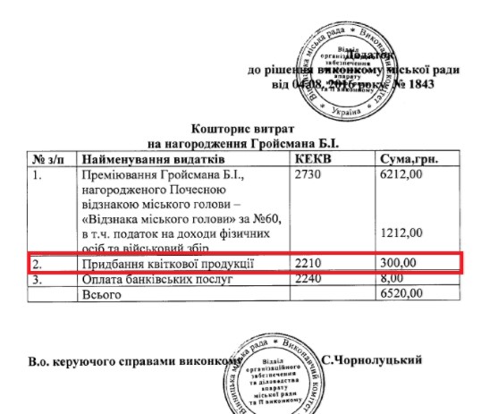 Батько прем’єр-міністра задекларував у 2016 році пенсію 36,4 тис. грн та майже 40 млн грн статків (більшість коштів у валюті). Разом з тим йому виконком Вінницької міськради виділив 6 тисяч гривень. Депутат-прогульник Гройсман отримав удесятеро більше, ніж інші депутати, яких вітала міськрада. Всі депутати, кого вітали за бюджетні гроші на День самоврядування, - представники пропрезидентської “Вінницької європейської стратегії” та партії БПП. Громадський рух ЧЕСНО вирішив дізнатися, за що батькові прем’єра, мільйонеру, виділили ці кошти з міського бюджету. Як виявилося, Вінницька міськрада нагородила батька чинного прем’єра за “активну участь у вихованні підростаючого покоління”, а також “за значний внесок у розвиток міста, вагомі трудові досягнення”. Принаймні так ідеться в офіційній відповіді. Цікаво, що на руки депутат Гройсман отримав тільки 5000 грн, бо 300 грн пішло на оплату квіткової продукції для привітання, а 1212 грн пішли на податки. Варто нагадати, що депутат Борис Гройсман, якого нагородили “за значний внесок у розвиток міста”, згідно з моніторингом Громадського руху ЧЕСНО за 2016 рік, є депутатом-прогульником, який пропустив 50% засідань сесій Вінницької міської ради. Прем’єр Володимир Гройсман наголосив, що депутат, який пропустив понад 50% засідань, має покаятись і скласти мандат”, але коли зачув, що мова йде про його рідного батька, зауважив, що він під ці критерії не підпадає. Поспілкуватися з самим Борисом Гройсманом не вдалося. Після останнього коментаря для ЧЕСНО щодо прогулів сесійних засідань він вже за своїм номером не відповідає. Виконком міської ради торік відзначав грошовою нагородою і Олександра Парвадова. Згідно з декларацією, його нагородили почесною грамотою і грошовою премією у розмірі 622 грн. Це удесятеро менше, аніж дали Гройсману при тому, що Парвадов не потрапив до лав депутатів-прогульників. Меня наградили за хорошою работу депутата. Ну, потому что меня миська рада 5 раз представляла в качестве кандидата на звание “Человека года” в номинации “депутат местного совета” на областную администрацию и по политическим мотивам не знаю по каким меня туда не пустили. Поэтому миська рада сказала, що у нас лучший депутат 5 лет Парвадов, почему вы его не награждаете? И вот мы его наградим грамотой за депутатскую работу. Вот и все, - каже Парвадов. Парвадов на те, що отримав удесятеро менше іншого депутата, не ображається. І хоча Громадський рух ЧЕСНО у запитанні не називав прізвище Гройсмана Парвадов і без того знав, що найбільшу нагороду отримав батько прем’єра: Так у него был юбилей. Борис Исакович Гройсман был награжден видзнакою миського головы “За заслуги перед Винницею” а там в регламенте на таку видзнаку предусмотрено такие деньги. Это раз в жизни платится за достижения семидесятилетного возвраста в данном случае. Все справедливо, Борису Исааковичу справедливо, вполне справедливо, это разовая премия за семидесятилетний возраст, за труд его, который он всю жизнь трудился. Вполне справедливо. Також подарунок у грошовій формі у розмірі 622 грн згідно з декларацією отримав і депутат від БПП Володимир Онофрійчук. За активну роботу також були нагороджені депутати від “Вінницької європейської стратегії” Світлана Ярова та Володимир Чорновол. У деклараціях депутатів інших фракцій Вінницької міськради Г