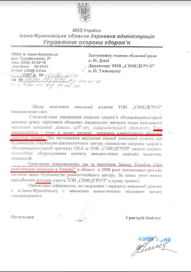 На Івано-Франківщині був побудований медичний заклад «Сімедгруп», який має приватний характер. За погодженням головного лікаря комунальної лікарні Остапа Грищука, який є зятем екс-міністра Зіновій Митник, будівництво відбулося. Про це пишуть «Наші гроші». Скрін сайту Українська правда. Формально новий приватний мед-заклад належить дочкам екс-міністра, який працював в уряді під час президенства Віктора Януковича. Зіновій Митник став міністром охорони здоров'я в кабміні Азарова у 2010 році. Як відомо, екс-міністр довгий час був на посаді головного лікаря обласної лікарні, що в Івано-Франківську. У 2008 році Митник очолив всім відому елітну клініку «Феофанію», посаду головного лікаря «залишив» в комунальному закладі своєму зятю - Остапу Грищуку. Знасновником обласної клінічної лікарні була обласна рада Івано-Франківщини. На сьогодні, на посаді головного лікаря перебуває Остап Грищук. Головний лікар перебуває у шлюбі з дочкою екс-міністра – Наталією Грищук. У 2008 році саме Грищук дав дозівл на виділення землі під будівництво закладу «Сімедгруп». На все це діло було виділено 0,4 га землі. Власниками «Сімедгруп» є Наталія Грищук та Ірина Остап’як, які є сестрами. У закладу є ще один співвласник - це Ігор Олійник, який є власником підприємства ТОВ «Житлобуд-1». В той час, коли проводилося виділення землі під будівництво лікарні, він був головою обласної ради Івано-Франківська. Коли розглядалося питання про виділення землі на будівництво лікарні, в листі управління охорони здоров’я обласної державної адміністрації Івано-Франківської області було зазначено, що планується будівництво центру реабілітації за участю ТО«ѳмедгруп».