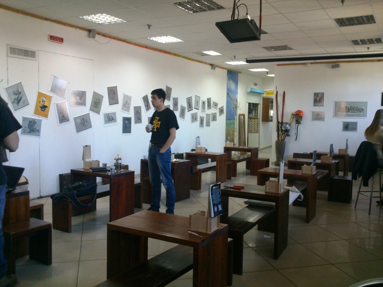 Євро-сируна, Турчєллу і багато інших персонажів можна було придбати на аукціоні робіт Юри Журавля в Житомирі. Вчора, 19 квітня, в Житомирі закінчилася виставка-аукціон робіт соліста гурту OT VINTA Юри Журавля. Тривала вона 3 тижні. Всі бажаючі могли роздивитися роботи не лише на фотографіях у соцмережах, а й побачити їх на власні очі в приміщенні "Кавоманії". Гроші, зібрані там, планують витратити на будівництво пам'ятника борцям за волю і соборність України в місті Житомирі. - Ми не планували отримувати якогось великого прибутку. Просто хотіли акумулювати хоч якісь гроші попередньо. Ми не обмежимося однією акцією. Це буде повноцінна кампанія, - Максим Вікарчук, один із організаторів аукціону розказує. Найближчим часом буде оголошено конкурс серед архітектурних і скульптурних колективів по реалізації самого проекту. Конкурс проходитиме в 2 етапи: 1 етап закінчиться виставкою найкращих робіт, і на день міста (у вересні) відбудеться уже підсумкове дійство, на якому буде оголошено результати і переможця. - Конкурс проголошується не лише на ідею, а й на місце. Але скоріше за все, що це буде на місці нашого поваленого Леніна. І площа пасує, і назва, і, знову ж таки, хочеться покращити культурний вигляд нашого міста, - додає Максим Вікарчук. В перший день після завершення виставки вже оплачено 10 лотів, а це понад 650 грн. Усього ж робіт було 24. Редакція бажає організаторам успіху в реалізації задумів.