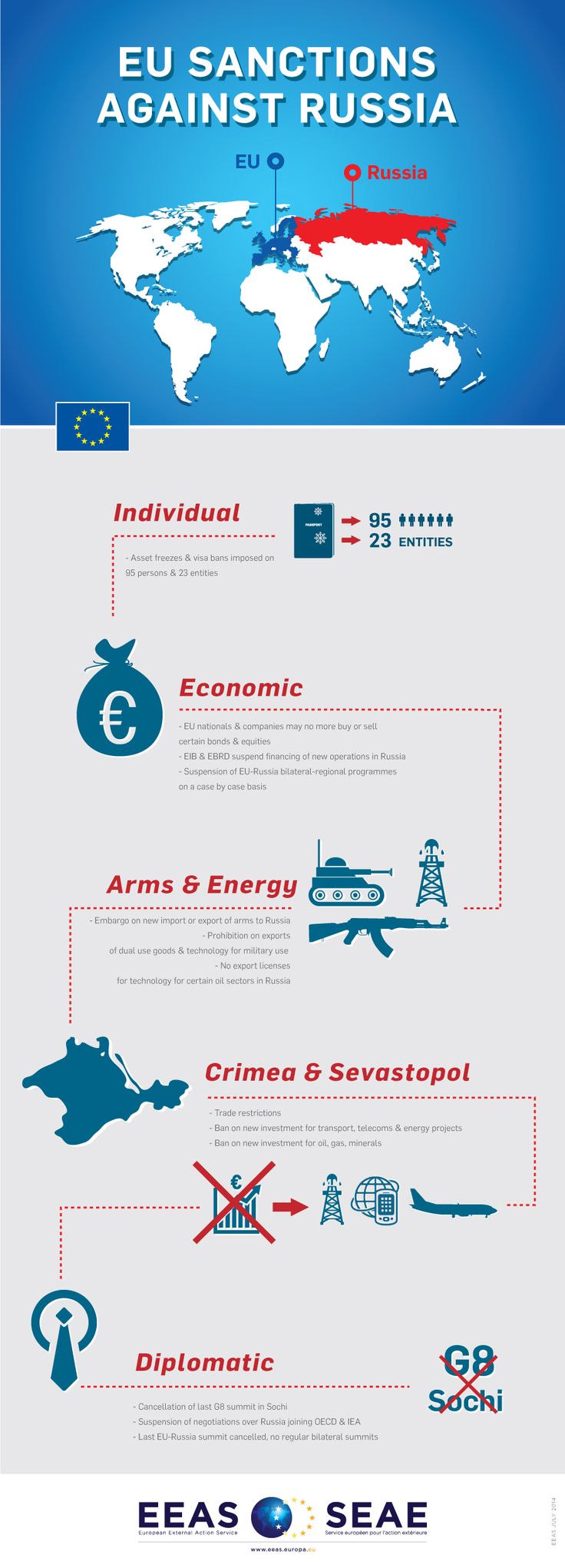 В Інтернеті з'явилася інфографіка всіх останніх санкцій ЄС проти Росії. Створили її в Європейській службі зовнішніх справ. Зображення оприлюднили на сайті pinterest.