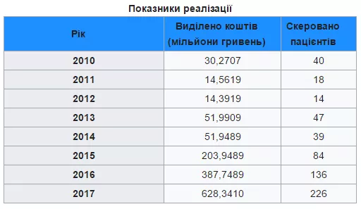 В Україні діє бюджетна програма КПКВК 2301360 «Лікування громадян України за кордоном», згідно якої українці можуть отримати лікування за межами країни, яке їм оплатить держава. На лікування направляють тих громадян, захворювання яких не лікуються в Україні, зазвичай це люди з онкологічними захворюваннями, або ж ті яким необхідна нейрохірургічна та кардіохірургічна допомоги. Програма «Лікування громадян України за кордоном» діє уже кілька років, найбільша кількість людей направлялися на лікування саме у 2018 році - 278 осіб, у 2017 - 226, а у 2016-136 людей. У попередні роки ця цифра не досягала і 100 осіб. Більш детально з кількість людей відправлених на лікування за кордон за державною програмою можете ознайомитися в інфографіці від МОЗ: З початком 2019 року на лікування направлено уже 44 людини, з яких 13 дітей. На лікування 40 з них виділено майже 115 мільйонів гривень, лікування іншим 4 особам здійснювалося за рахунок залишків коштів, які знаходилися на рахунках іноземних клінік, а це майже 334 тисячі доларів. У 2018 році на лікування за кордоном за державною програмою було використано 653 млн гривень. На 2019 рік передбачається що ця сума сягне майже 690 мільйонів гривень. У Вікіпедії також зазначені дані, щодо виділення коштів у період з 2010 по 2017 рік, з показниками можете ознайомитися на зображенні: