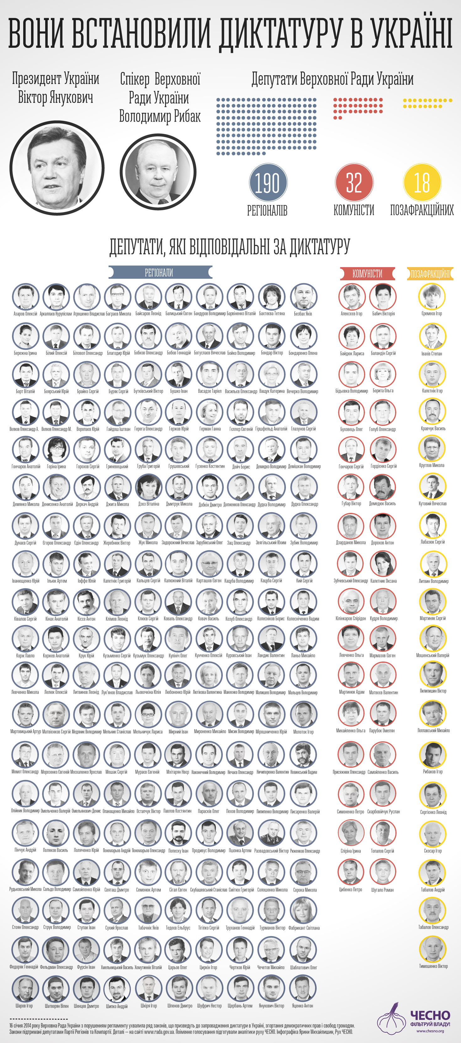 Сьогодні під Радою прозвенів "перший дзвіночок" на перевибори. Громадський рух "ЧЕСНО" із Люстраційним комітетом вимагали аби в країні відбулася справжня "чистка" політиків - право балотуватися до парламенту мають лише ті, хто не голосував за "диктаторські закони", не замішаний у корупції, відкрив свою автобіографію, декларацію та фінансовий звіт про передвиборчу кампанії. Перший критерій очищення нової Ради простий та очевидний: жоден із депутатів, що віддав свій голос за диктаторські "закони 16 січня", не має потрапити до ВР восьмого скликання. Причина зрозуміла усім: ці закони не лише є крищучим порушенням прав людини, але й в умовах, що склалась на час їхнього ухвалення, призвели до загострення протистояння та смертей мирних протестувальників. ПОСИЛАННЯ НА ІНФОГРАФІКУ